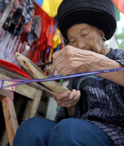 心靈手巧的苗家姑娘不僅會(huì)繡花,會(huì)紡紗織布,還能紡織各種圖案的花帶。
