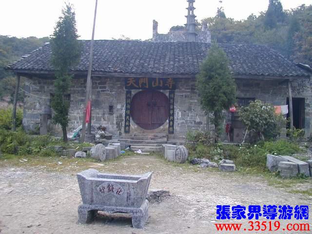 (天門山寺)天門山寺最早建于唐代,古稱云缽庵、靈泉院、嵩梁堂,明代時(shí),因擇址不當(dāng)而屢遭風(fēng)摧又常遭水荒,才將天門山寺從東部山頂遷移至此。以前這里古木參天,濃蔭蔽日。古寺門楣上刻有“天門仙山”四字,大門兩邊的對(duì)聯(lián)是:“天外有天天不夜,山上無(wú)山山獨(dú)尊”,傳為李自成部將野拂撰書(shū)。進(jìn)門為大佛殿后面有觀音堂,兩邊六間平房,最后一棟是祖師殿,規(guī)模宏大。民間概括為“三進(jìn)堂、六耳房,磚墻鐵瓦鍋如壙”。山寺原建筑十分講究,飛檐翹角,雕龍畫(huà)鳳,并塑有佛道神像菩薩等。還有大鼓一面,千斤大鐘一口,一座七級(jí)石塔和一個(gè)大化錢爐。據(jù)碑刻記載,自清乾隆至民國(guó)五年的163年間,天門山寺共修葺過(guò)七次,香火曾盛極一時(shí),湘鄂川黔邊境十多個(gè)縣的信徒絡(luò)繹不絕,都來(lái)這里進(jìn)香拜佛?,F(xiàn)天門山旅游股份有限公司正在大規(guī)模地修復(fù)天門山寺,昔日的繁華又將重現(xiàn)。