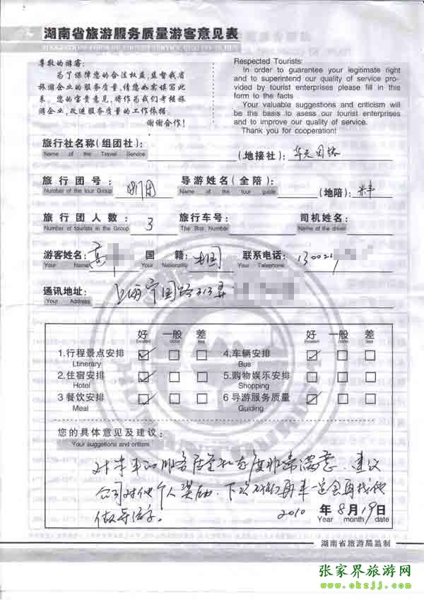 2010年8月19上海高先生一行位旅游質(zhì)量反饋:對導(dǎo)游非常滿意,行程安排都很好